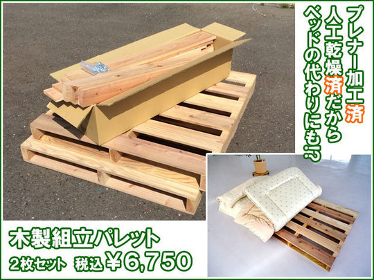 縦1m×幅1mのパレット2枚分の材料を箱に詰めて宅配便でお届けします。組立はお客様の手で。