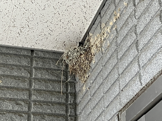 そんな天気状況ですが、6月の初めに本社玄関の入り口上部につばめが巣を作りました。