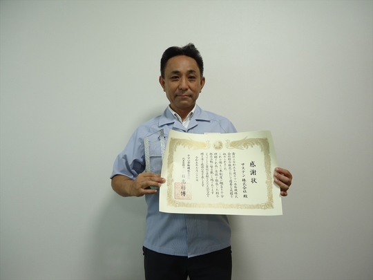 前年度に続き、ヤマハ発動機製品の販売に大きな貢献をすることができ、感謝状とトロフィーをいただきました。