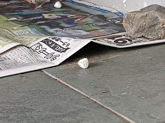 玄関社前に白くて小さく丸っこいものが落ちていました。