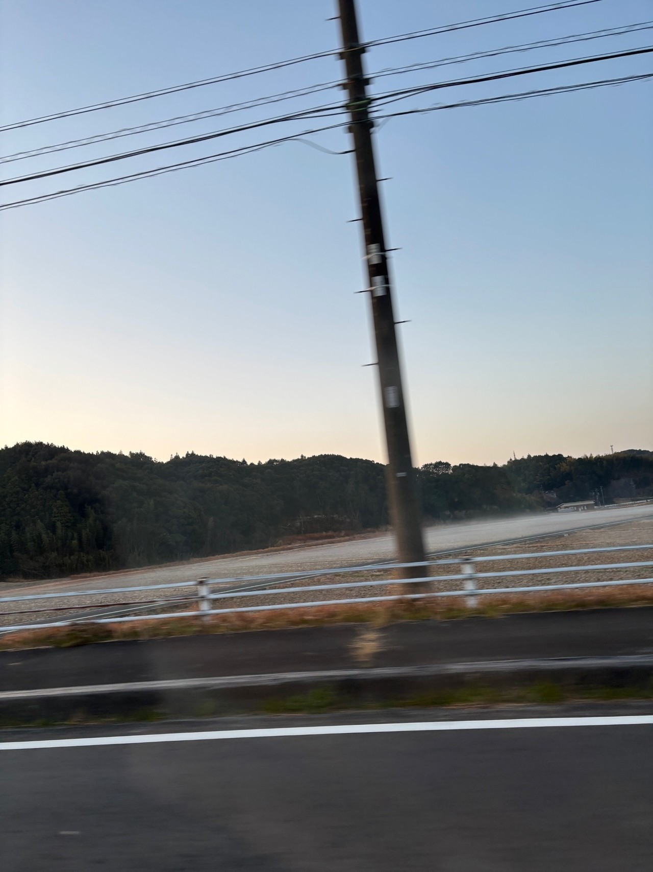 近所の畑には真っ白な霜が降りていますが、その上には靄がかかり幻想的な雰囲気を醸し出しています。