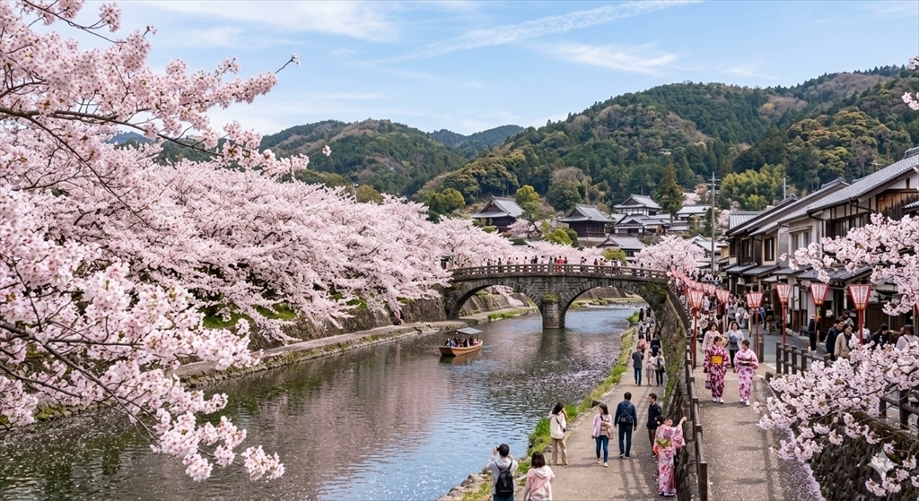ちなみに、AI助手に「満開の桜が咲き誇る遠州の小京都森町」を描かせたら「何処だココ?」みたいな画像ができました。